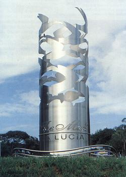 The Mall in La Lucia, Durban North, was recently revamped and now boasts three striding stainless steel towers which welcome customers to the new centre. Each tower is 6.6m high and 2.2m wide, on a built-up planted base..